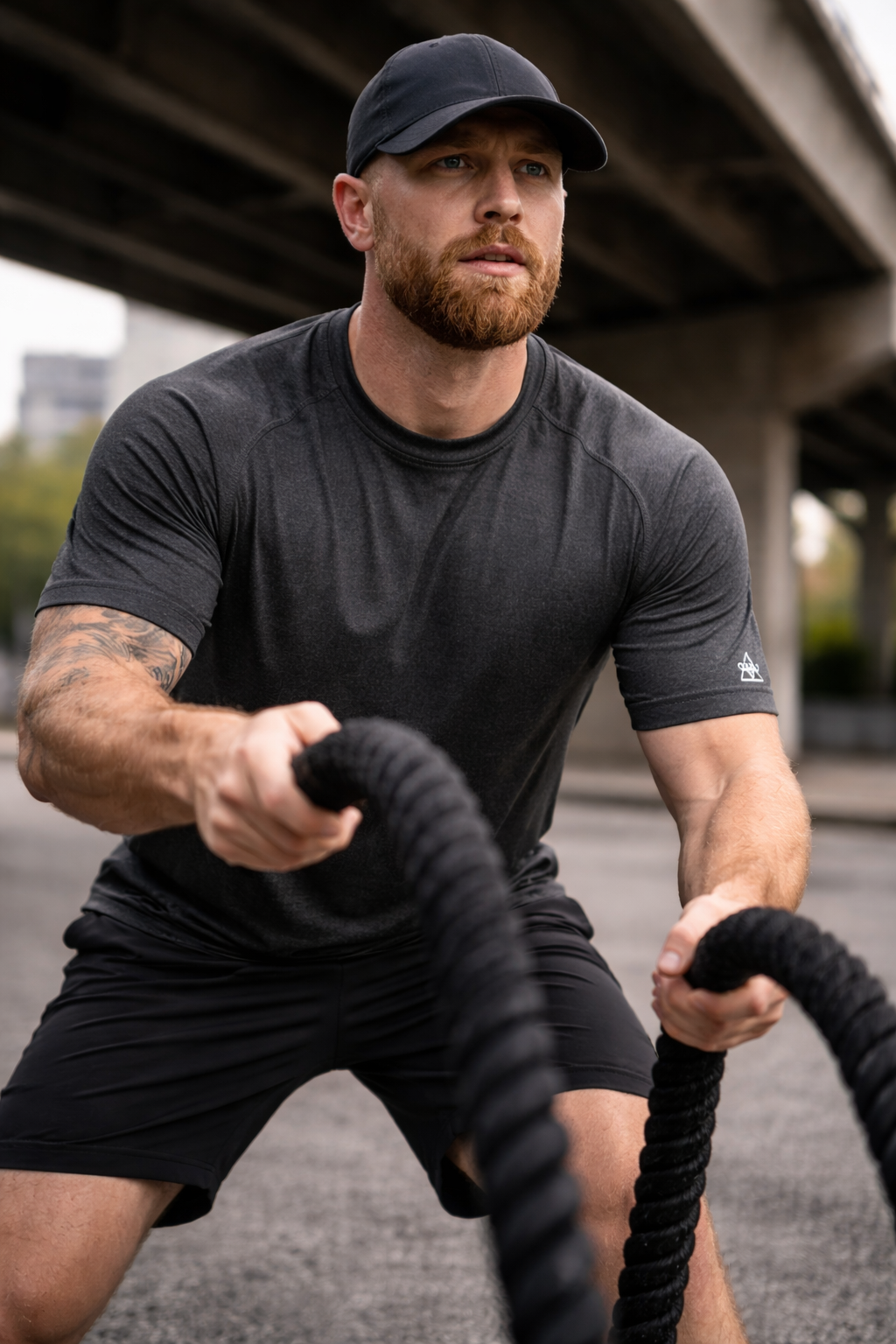 Breathable, soft, and built with stretch, it moves with you and keeps its shape from morning to night. Clean fit, minimal design, dependable comfort—this is your everyday tee.